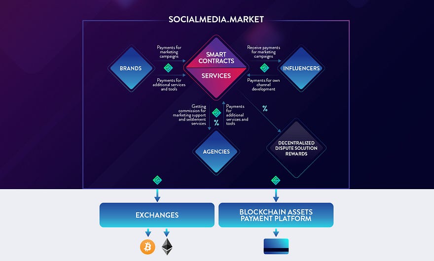 SocialMedia.Market adalah ekosistem terdesentralisasi pertama yang menemukan, membuat, menjalankan dan menganalisis kampanye iklan dengan pemberi media sosial.